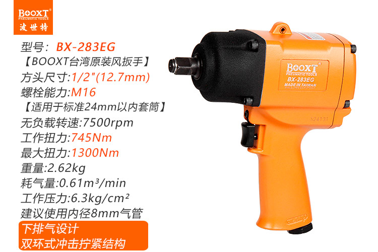 東莞市強勁五金工具有限公司提供臺灣BOOXT波世特品牌氣動工具,臺灣氣動扳手BX-283EG廠家直銷,首件享特價。咨詢熱線:4008301980