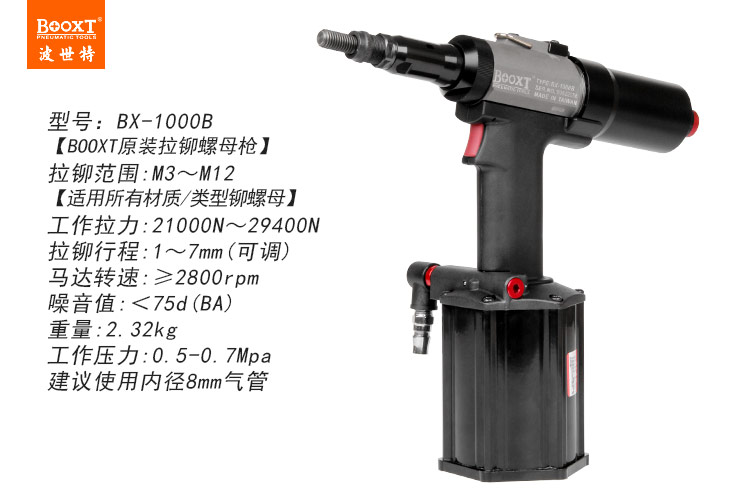 東莞市強(qiáng)勁五金工具有限公司提供BOOXT波世特品牌氣動(dòng)工具,氣動(dòng)拉鉚螺母槍BX-1000B廠家直銷,首件享特價(jià)。咨詢熱線:4008301980