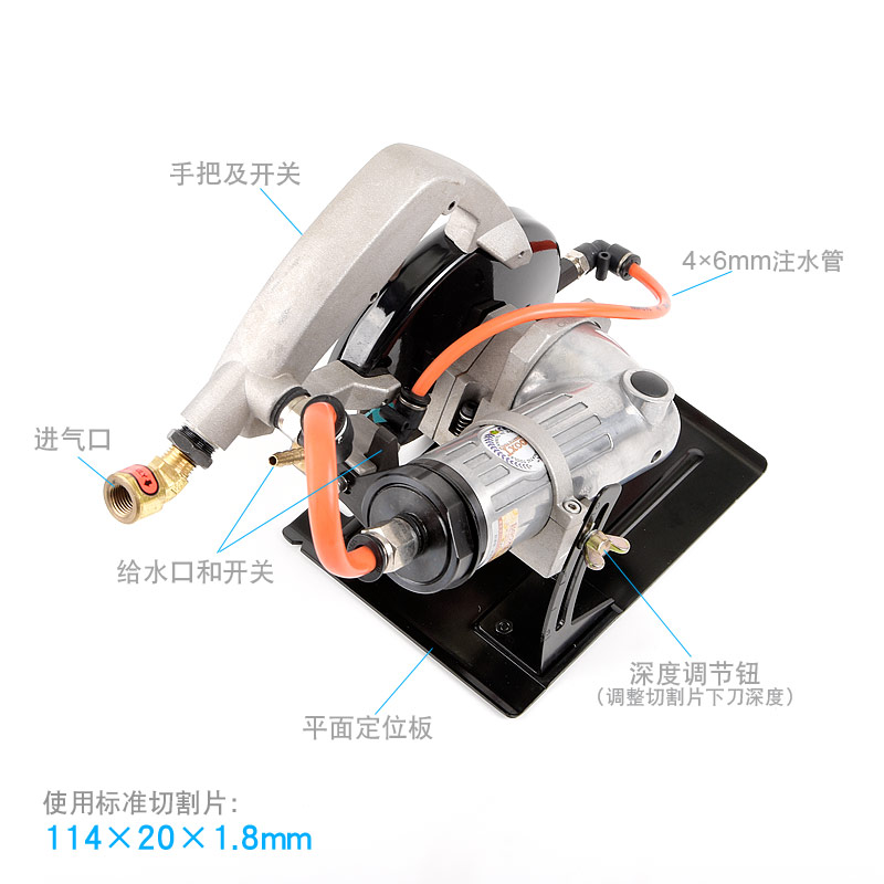 以壓縮空氣為動(dòng)力,沒有觸電的危險(xiǎn)(傳統(tǒng)用電,石材切割都需要注水,用電非常不安全)。