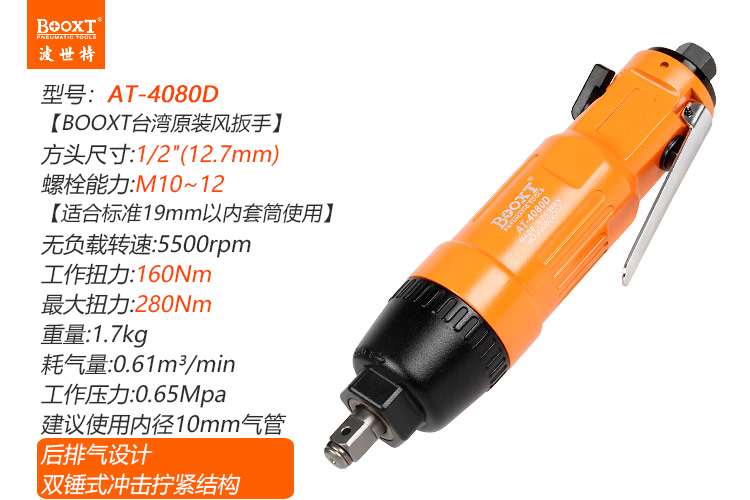 東莞市強勁五金工具有限公司提供臺灣BOOXT波世特品牌氣動工具,直型氣動扳手AT-4080D廠家直銷,首件享特價。咨詢熱線:4008301980