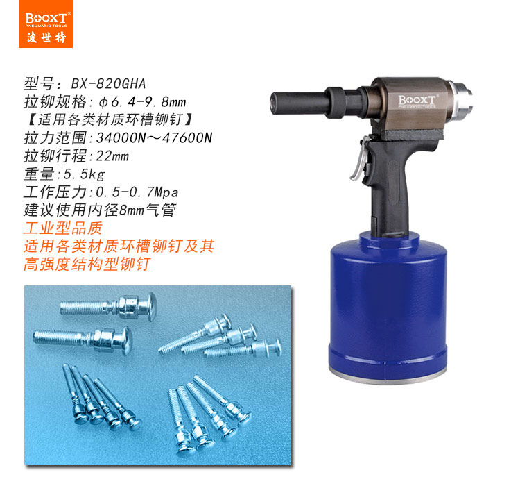 東莞市強(qiáng)勁五金工具有限公司提供臺(tái)灣BOOXT波世特品牌氣動(dòng)工具,氣動(dòng)環(huán)槽鉚釘槍BX-820GHA廠家直銷,首件享特價(jià)。咨詢熱線:4008301980