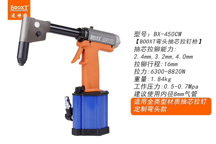 東莞市強(qiáng)勁五金工具有限公司提供臺灣BOOXT波世特品牌氣動工具,彎頭氣動拉鉚槍BX-450CW廠家直銷,首件享特價。咨詢熱線:4008301980