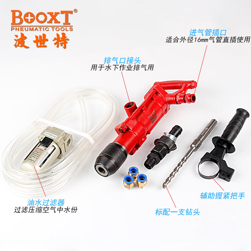 • 產(chǎn)品參數(shù): 鉆頭尺寸:M6,8,10,12,14,16,18,20,22,25, 28,30 【標(biāo)配M14】 活塞直徑:39mm 活塞行程:38mm 沖擊能量:大于等于3.5J 沖擊頻率:68HZ 全 長:575mm 重 量:7.40kg 耗 氣 量:12L/min 【適用于水下作業(yè)】