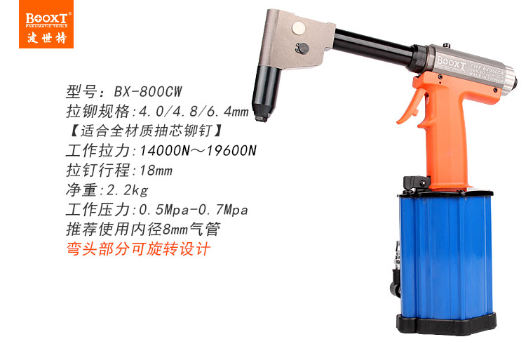 東莞市強勁五金工具有限公司提供臺灣BOOXT波世特品牌氣動工具,彎頭氣動拉鉚釘槍BX-800CW廠家直銷,首件享特價。咨詢熱線:4008301980