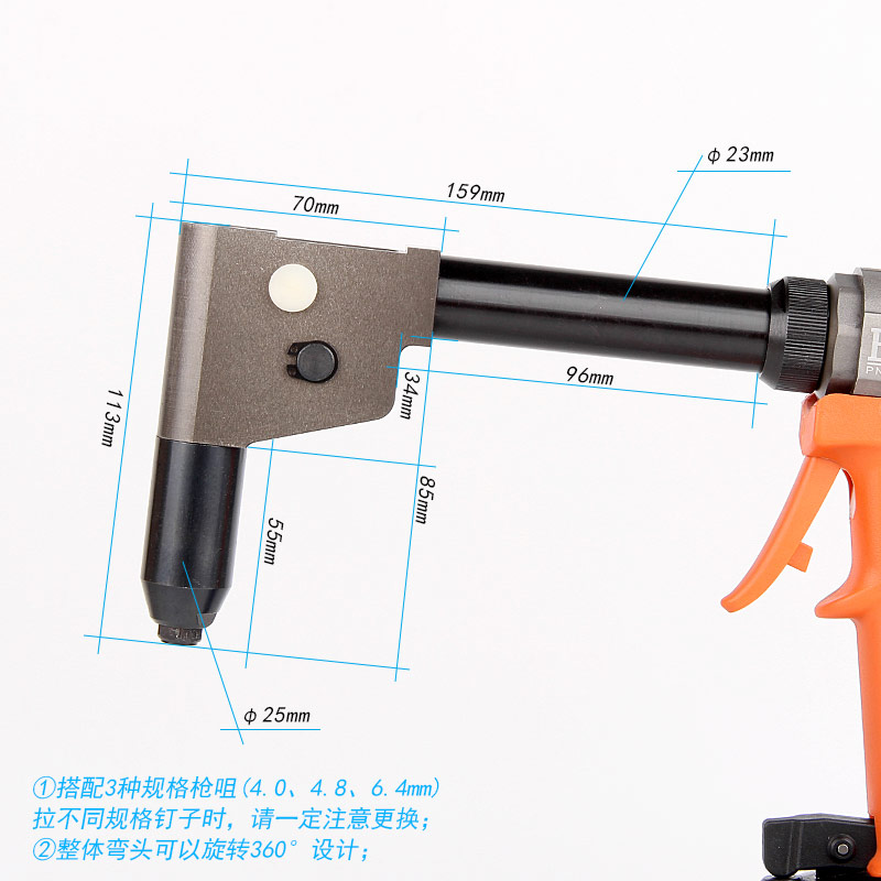 8.彎頭設計,適用于狹窄、偏角、受阻等工位的鉚接作業(yè)。