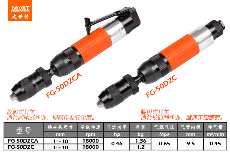 東莞市強(qiáng)勁五金工具有限公司提供臺(tái)灣BOOXT波世特品牌氣動(dòng)工具,自鎖風(fēng)動(dòng)鉆FG-50DZCA廠家直銷,首件享特價(jià)。咨詢熱線:4008301980