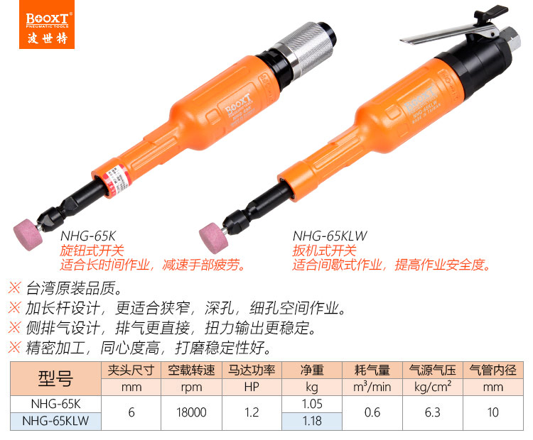 東莞市強(qiáng)勁五金工具有限公司提供臺灣BOOXT波世特品牌氣動工具,加長氣動打磨機(jī)NHG-65KLW廠家直銷,首件享特價。咨詢熱線:4008301980
