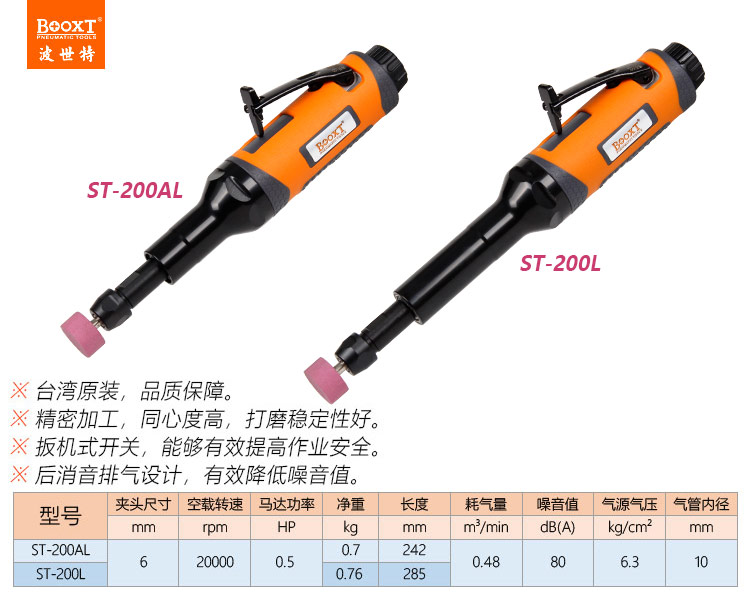 東莞市強勁五金工具有限公司提供臺灣BOOXT波世特品牌氣動工具,加長氣動打磨機ST-200AL廠家直銷,首件享特價。咨詢熱線:4008301980