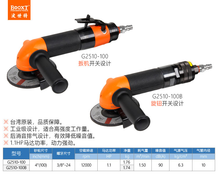 東莞市強(qiáng)勁五金工具有限公司提供臺(tái)灣BOOXT波世特品牌氣動(dòng)工具,歐洲款風(fēng)動(dòng)角磨機(jī)G2510-100B廠(chǎng)家直銷(xiāo),首件享特價(jià)。咨詢(xún)熱線(xiàn):4008301980
