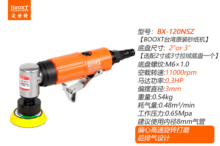 東莞強勁五金工具有限公司提供臺灣BOOXT波世特氣動工具,偏心氣動打磨機BX-120NSZ廠家直銷,首件享特價。咨詢熱線:4008301980