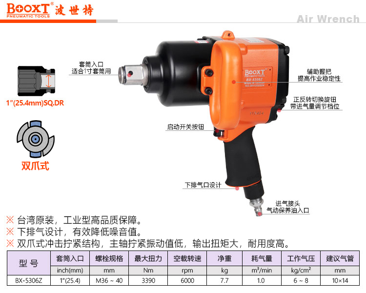 東莞市強(qiáng)勁五金工具有限公司提供臺灣BOOXT波世特品牌氣動(dòng)工具,雙爪式結(jié)構(gòu)氣動(dòng)扳手BX-5306Z廠家直銷,首件享特價(jià)。咨詢熱線:4008301980