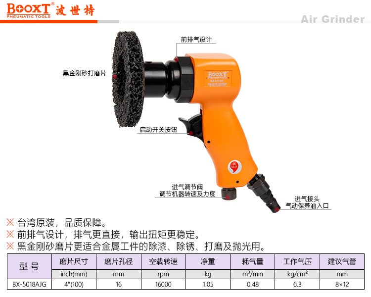 東莞市強(qiáng)勁五金工具有限公司提供臺灣BOOXT波世特品牌氣動工具,氣動黑金剛砂打磨機(jī)BX-5018AJG廠家直銷,首件享特價。咨詢熱線:4008301980