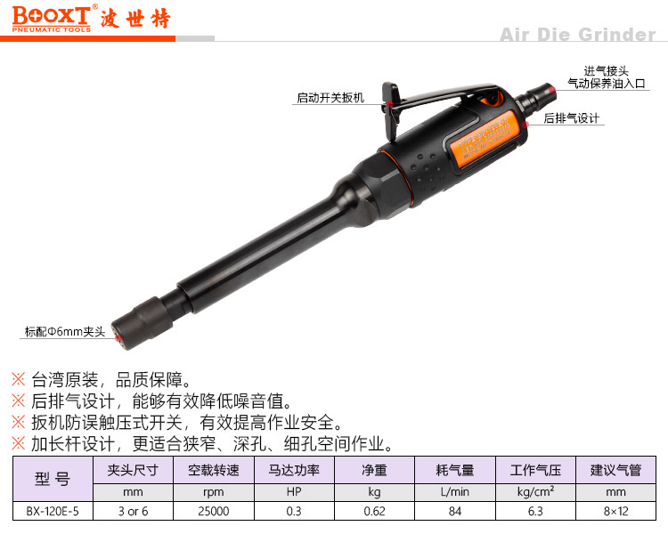 東莞市強勁五金工具有限公司提供臺灣BOOXT波世特品牌氣動工具,加長氣動刻磨機BX-120E-5廠家直銷,首件享特價。咨詢熱線:4008301980