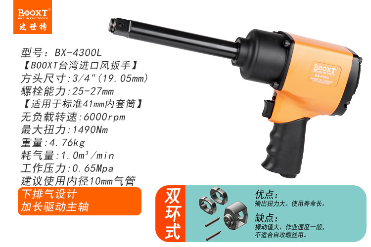 東莞市強勁五金工具有限公司提供臺灣BOOXT波世特品牌氣動工具,加長軸氣動扳手BX-4300L廠家直銷,首件享特價。咨詢熱線:4008301980