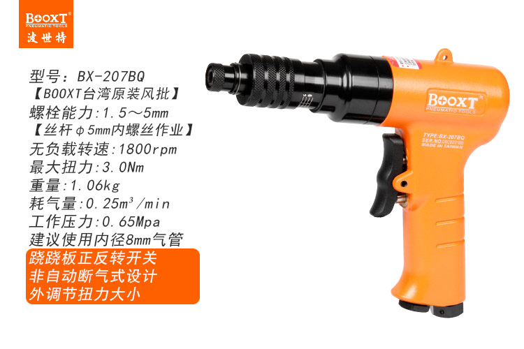 東莞強勁五金工具有限公司提供臺灣BOOXT波世特氣動工具,離合式風批BX-207BQ廠家直銷,首件享特價。咨詢熱線:4008301980